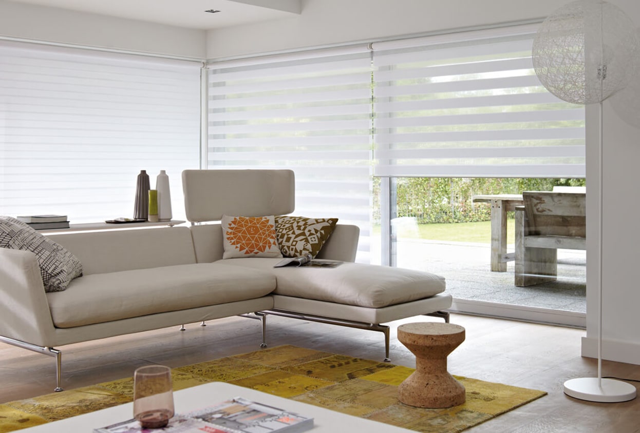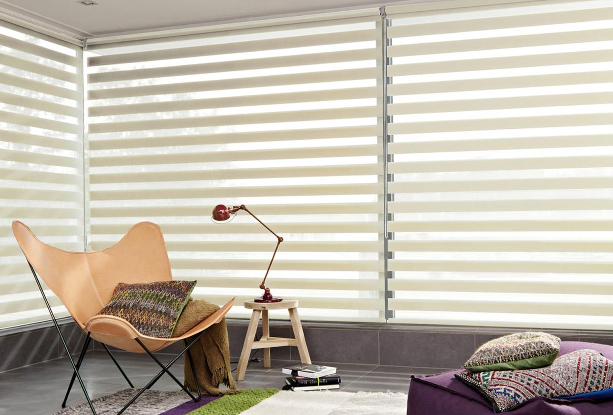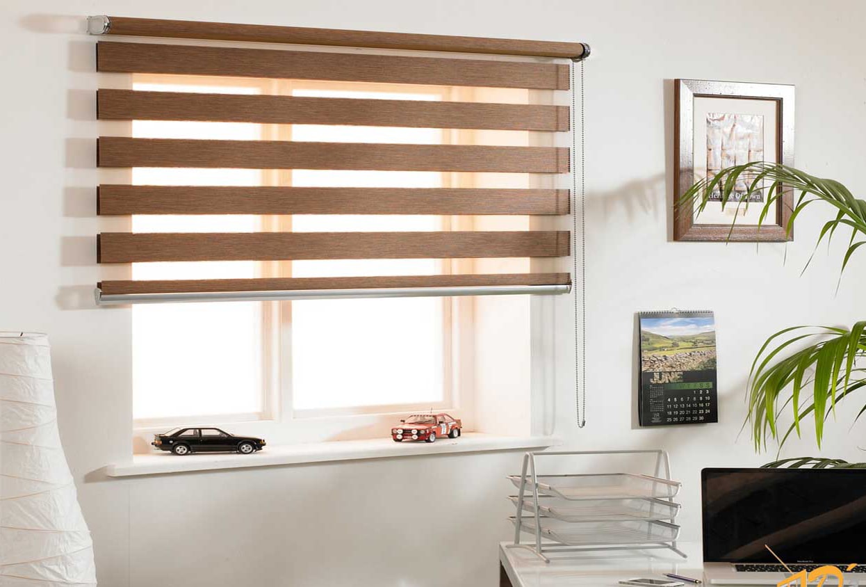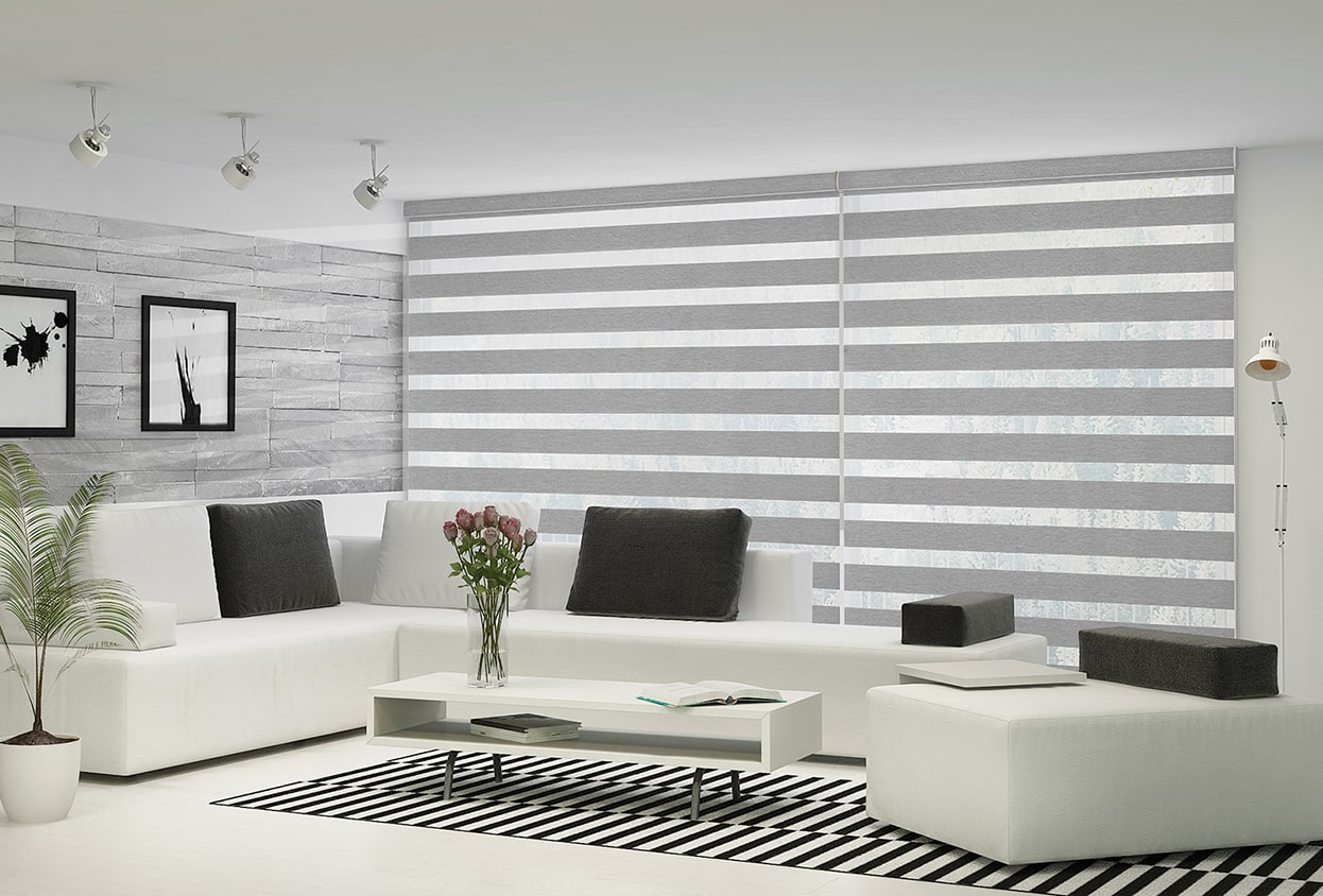 La Cortina roller Duo o Zebra Decorvibo® tiene diseños y componentes que le dan alta resistencia. Esta cortina enrollable esta compuesta por una doble tela que crea un efecto de día y noche, alternando franjas de tela opaca y traslúcida que se superponen permitiendo regular el ingreso de luz en cualquier posición. Esta enrollable doble ofrece, además, jugar con los niveles de privacidad a medida que se abre o cierra, con un mayor blackout, ya que posee un mínimo gap de luz al estar completamente cerrada.